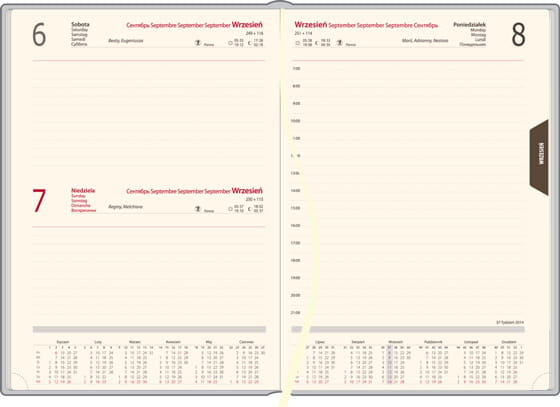- Układ: 1 dzień na 1 stronie, sobota i niedziela na 1 stronie