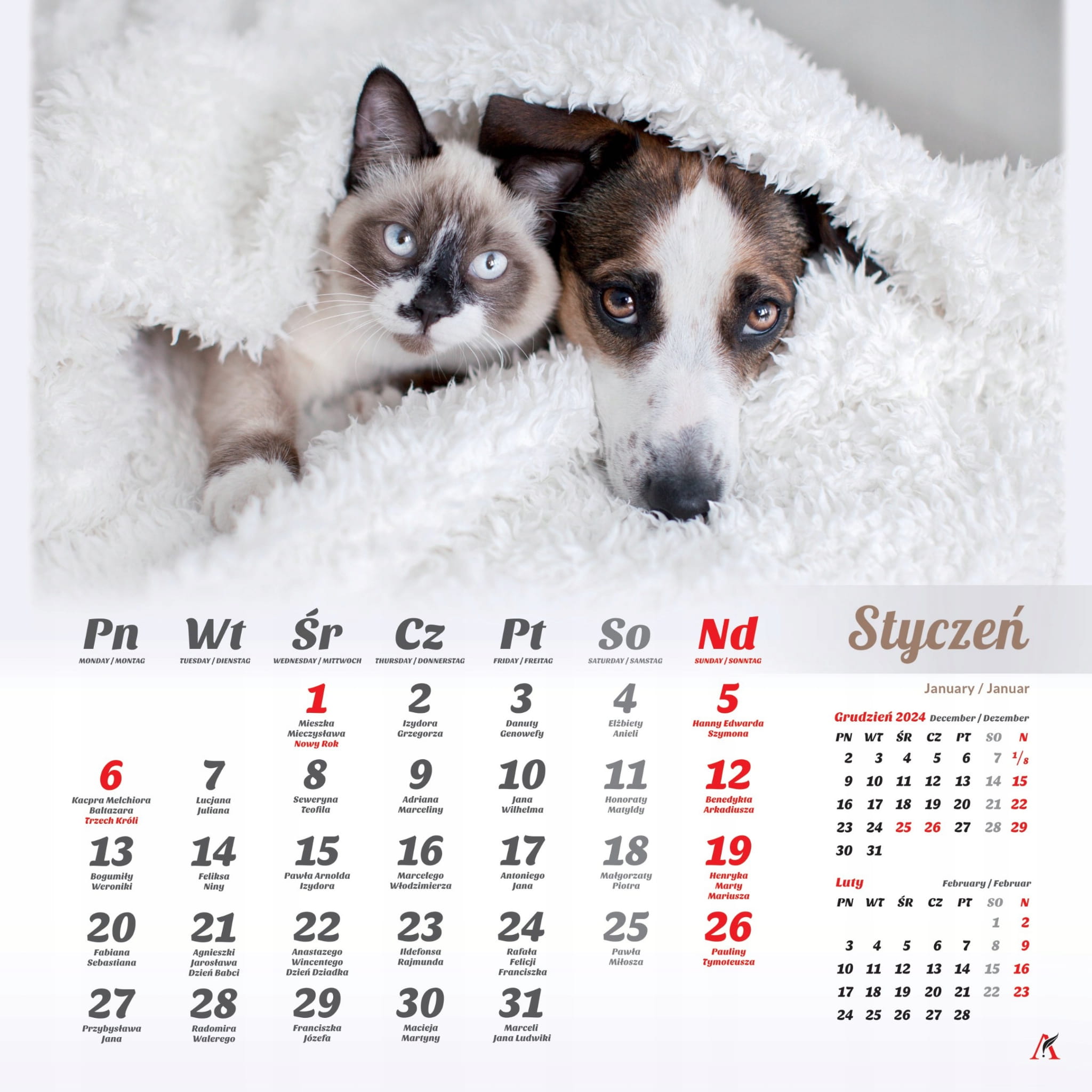 KAL. ŚCIENNY PRZYJACIELE KWADRAT 33x33 CM WIELOPLANSZOWY